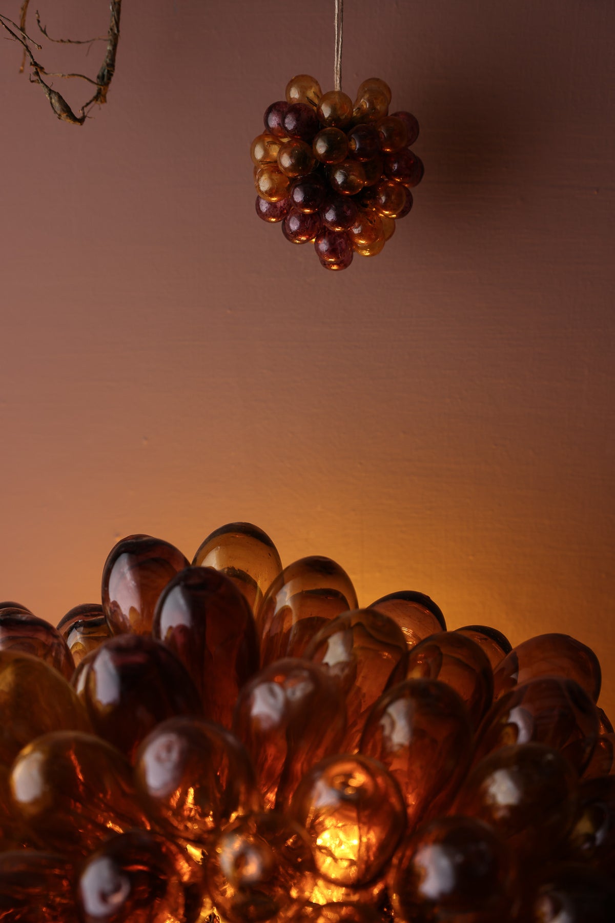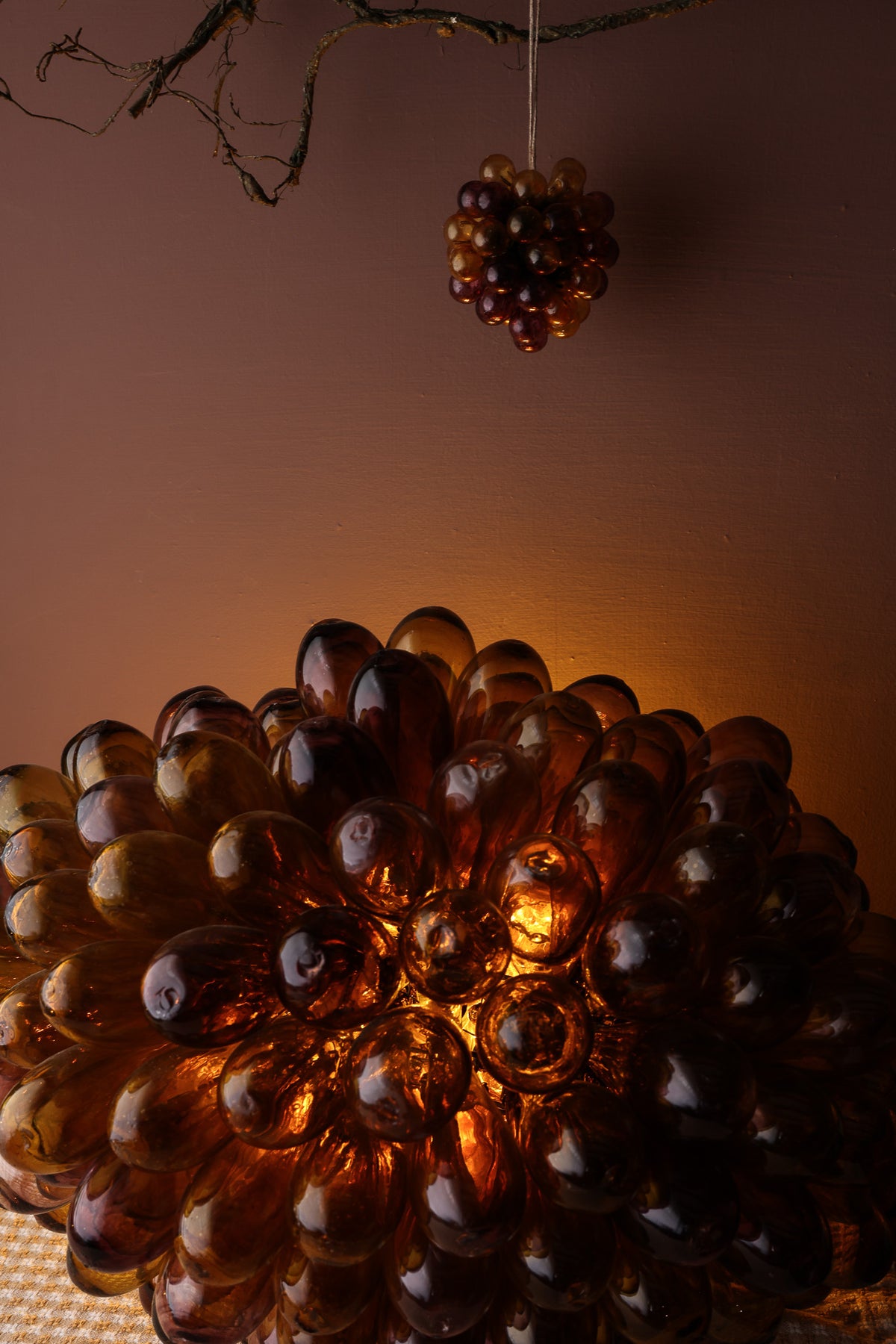 The smaller and slightly more affordable version of our beautiful Syrian Grappe lamp, this gorgeous ornament has been crafted from recycled glass featuring a cluster of little glass balls in purple and amber hues. (In the pic it's the little hanging cluster)